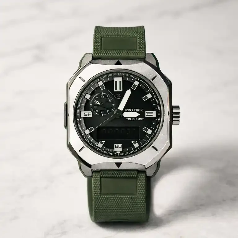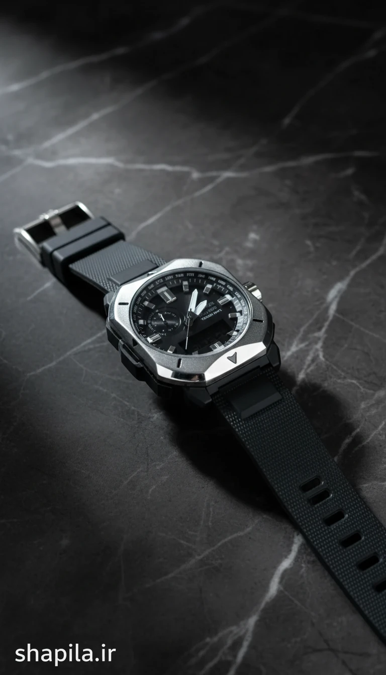 ساعت جیشاک ترکیبی از استحکام، طراحی اسپرت و ظاهر جسورانه است. بدنهی مقاوم و حجیم آن نشان میدهد برای شرایط سخت و استفاده روزمره ساخته شده و میتواند ضربهها و فشارهای ناگهانی را بهخوبی تحمل کند. رنگ سبز خاص بند و بدنه، ساعت را از مدلهای معمولی متمایز کرده و آن را برای استایلهای خیابانی، اسپرت و ماجراجویانه به انتخابی جذاب تبدیل میکند. قاب برجسته و دکمههای بزرگ کناری استفاده از ساعت را حتی هنگام حرکت یا ورزش آسان میکند. صفحهی چندلایه و طراحی سهبعدی داخل قاب حس حرفهای بودن و عمق بصری زیبایی ایجاد کرده و ترکیب نمایشگر دیجیتال با نشانگرهای آنالوگ (اگر مدل شما از نوع آنالوگ-دیجیتال باشد) کاربرد و جذابیت بیشتری به آن میدهد. بند رزینی مقاوم، سبک و ضدتعریق است و سگک محکم آن کمک میکند ساعت در فعالیتهای شدید ثابت بماند. لبههای برجستهی قاب هم از شیشه در برخوردهای ناگهانی محافظت میکنند. نور پسزمینه یا LED داخلی (در بسیاری از مدلهای مشابه) خواندن ساعت را در محیطهای کمنور آسان میکند و امکاناتی مثل تایمر، کرنومتر، آلارم و زمان دوم نیز برای ورزش و برنامهریزی روزانه بسیار مفید هستند. ظاهر سبز مات و فرم قدرتمند ساعت باعث میشود هم در طبیعت و فضای بیرون جذاب باشد و هم برای استایل شهری ویژه به نظر برسد. با وجود ظاهر حجیم، روی مچ دست راحت مینشیند و وزن آن بعد از مدتی آزاردهنده نیست. جزئیات زیاد روی قاب و صفحه نیز در عکاسی تبلیغاتی و کلوزآپ جلوه بسیار زیبایی دارند. در مجموع، این ساعت جیشاک سبز انتخابی مناسب برای کسانی است که ساعتی بادوام، خوشاستایل، خشن و متفاوت میخواهند؛ ساعتی که هم در ماجراجویی همراه باشد و هم در استفاده روزمره جذاب دیده شود.