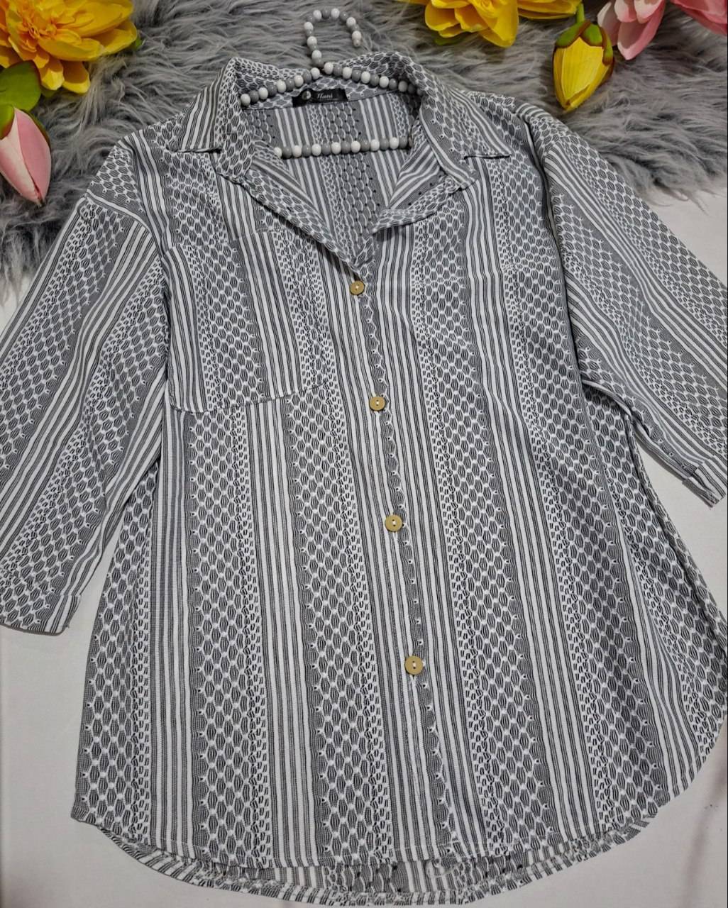 دستهبندی: پوشاک زنانه و دخترانهنام: شومیز جنس مراکشیسایز بندی: فری سایزجنس: مراکشی اعلاقد شومیز: 66سانتی متردور سینه : 96سانتی مترقد آستین از یقه : 48سانتی متردور بازو : 40سانتی مترویژگی محصول : بدون آبرفت -بدون رنگدهی-بدون چروک پذیری-آستین سه ربع پاکتی-پارچه قابلیت کشسان داردنمایش بیشتر